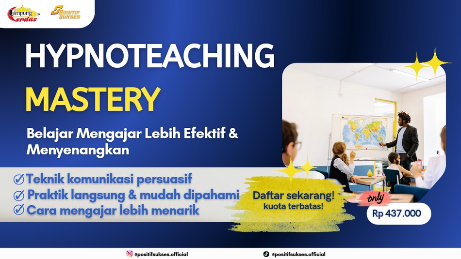 Mengajar bukan sekadar menyampaikan materi. Banyak pengajar memiliki materi yang bagus, namun tidak tersampaikan dengan efektif. Di kelas ini, peserta akan belajar teknik hypnoteaching, yaitu pendekatan komunikasi yang membuat audiens lebih fokus, lebih terlibat, dan lebih mudah memahami materi.
