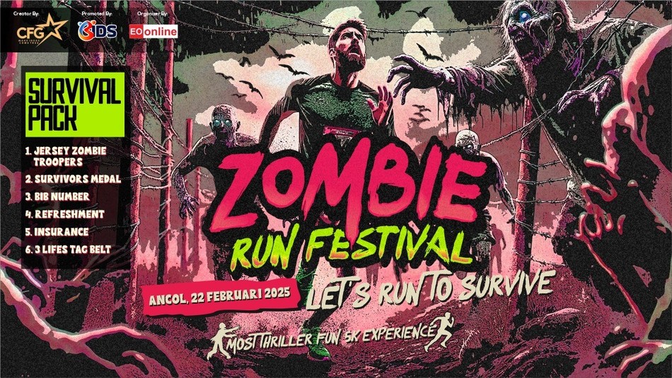 Jakarta Zombie Run Festival 2025 akan menjadi pengalaman lari paling mendebarkan di tahun ini! Bersiaplah untuk berlari melewati rute yang penuh dengan rintangan dan para "zombie" yang siap mengejarmu. Acara ini menggabungkan olahraga, hiburan, dan sensasi menyeramkan dalam satu festival yang tak terlupakan. Semua peserta dapat merasakan adrenalin saat berlomba untuk selamat dari kejaran zombie di tengah suasana festival yang seru.