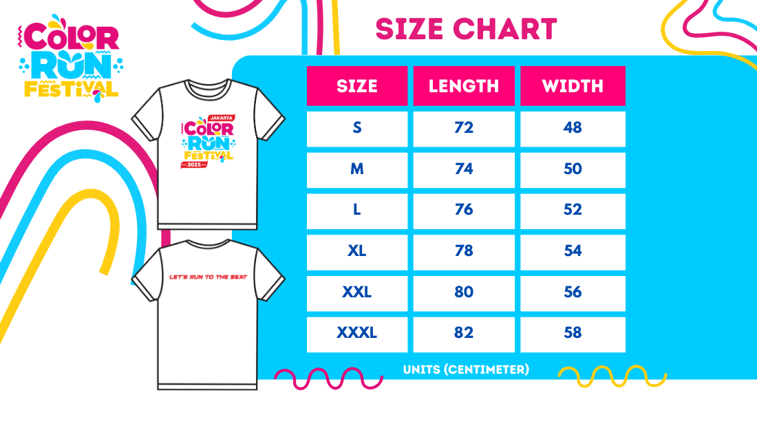 - Peserta wajib mengenakan Jersey BANDUNG COLOR RUN FESTIVAL 2025 dan nomor peserta/ BIB pada bagian dada dengan lengkap dan benar serta dapat terlihat jelas oleh penyelenggara dan event organizer. Peserta yang tidak mengenakan jersey BANDUNG COLOR RUN FESTIVAL 2025 dan tidak menggunakan nomor peserta/ BIB dengan lengkap dan benar dapat didiskualifikasi dari BANDUNG COLOR RUN FESTIVAL 2025. Peserta bertanggung jawab penuh atas tindakan dirinya sendiri dan membebaskan penyelenggara, event organizer, sponsor acara, dan/atau peserta lainnya atas segala resiko yang mungkin diderita sebelum, saat perlombaan, atau setelah berpartisipasi dalam BANDUNG COLOR RUN FESTIVAL 2025 , termasuk cedera tubuh, kerusakan properti, penyakit, dan/atau kematian.