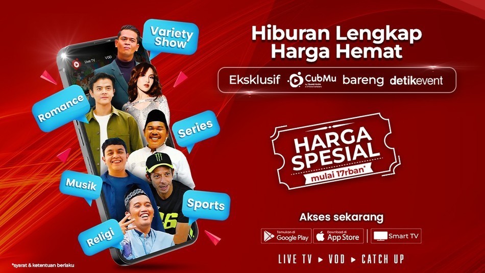 CubMu berkolaborasi dengan Detik menghadirkan Paket Premium Super Spesial yang hanya bisa kamu dapatkan lewat halaman ini! Nikmati ratusan tayangan berkualitas: dari romansa yang bikin baper, aksi yang bikin deg-degan, hingga musik dan religi yang menenangkan hati semua bisa kamu tonton sepuasnya, kapan pun, di mana pun. Langganan sekarang yuk!