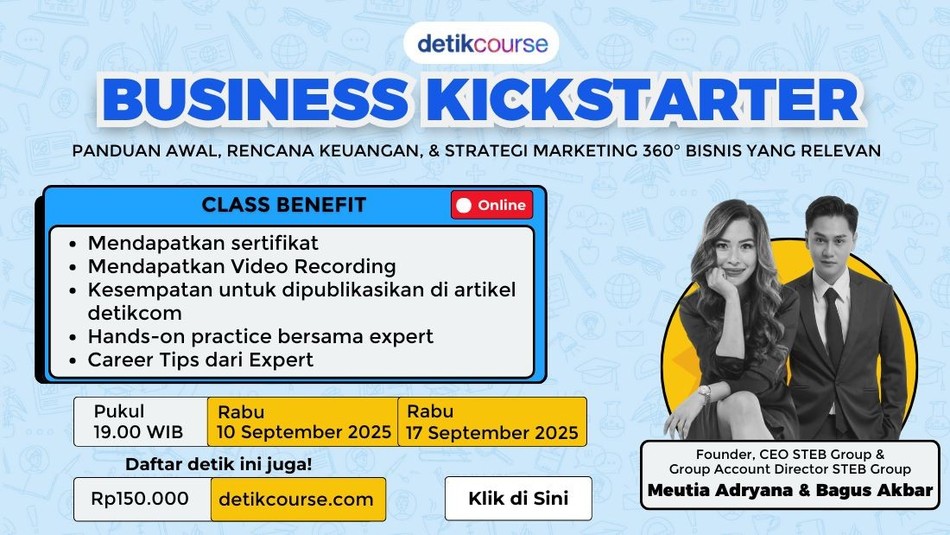 Bersama Meutia Adryana (Founder & CEO STEB Group) dan Bagus Akbar (Group Account Director STEB Group), kamu akan mempelajari langkah-langkah penting sebelum memulai bisnis, mulai dari menyusun rencana keuangan, mengatur arus kas, merekrut tim pertama, membangun produk atau jaringan, hingga memasarkan brand secara efektif.