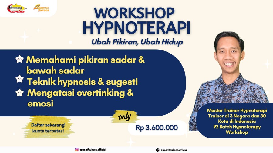 Melalui Hypnotherapy Professional Workshop: Kuasai Teknik Terapi Pikiran untuk Perubahan Nyata, kamu bisa mempelajari teknik ini secara praktis dan terstruktur. Workshop ini dirancang agar mudah dipahami, bahkan oleh kamu yang belum memiliki latar belakang di bidang terapi.