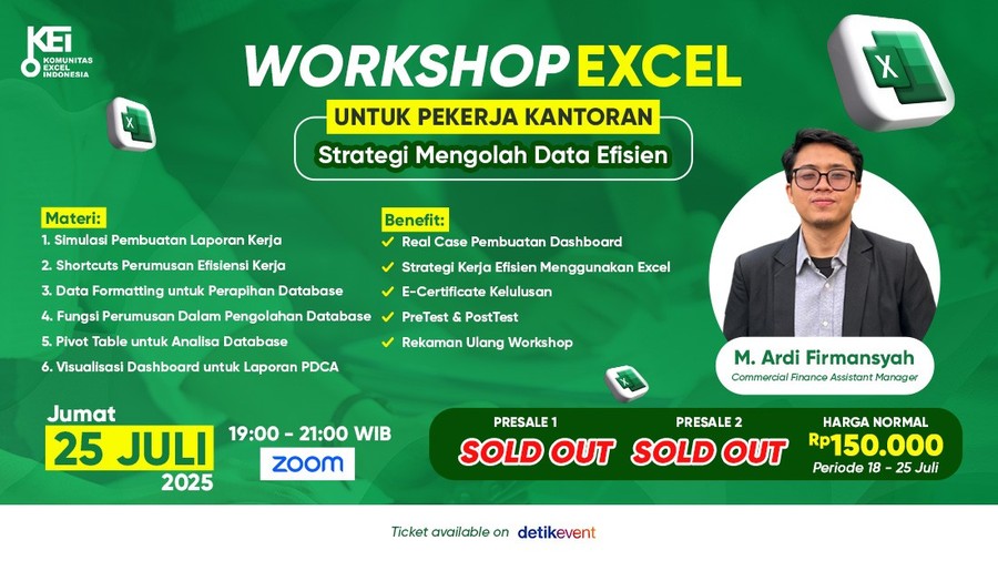 Bundling Class Microsoft Excel X Google sheets by KEI Learning 01 November 2025 - 09 November 2025 Event Online Mulai dari Rp 600.000 Rp 480.000
