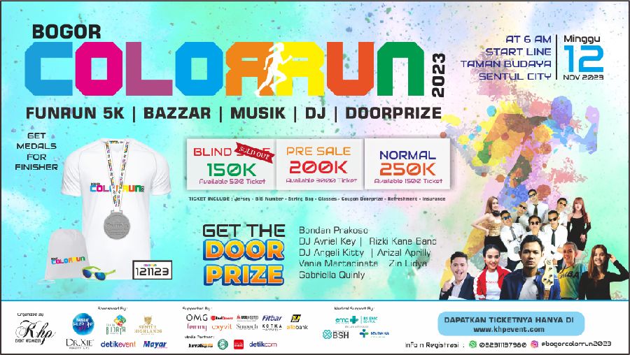 Bogor Colorrun 2023 12 November 2023 Taman Budaya Sentul City, Jalan Siliwangi, Sumur Batu, Bogor Regency, West Java, Indonesia Mulai dari Rp 205.000